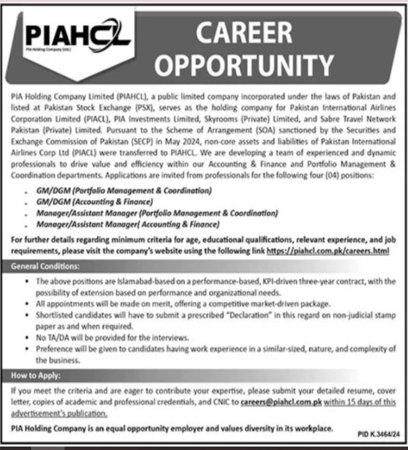 Vacancy Details of PlA Holding Company Limited Jobs 2025